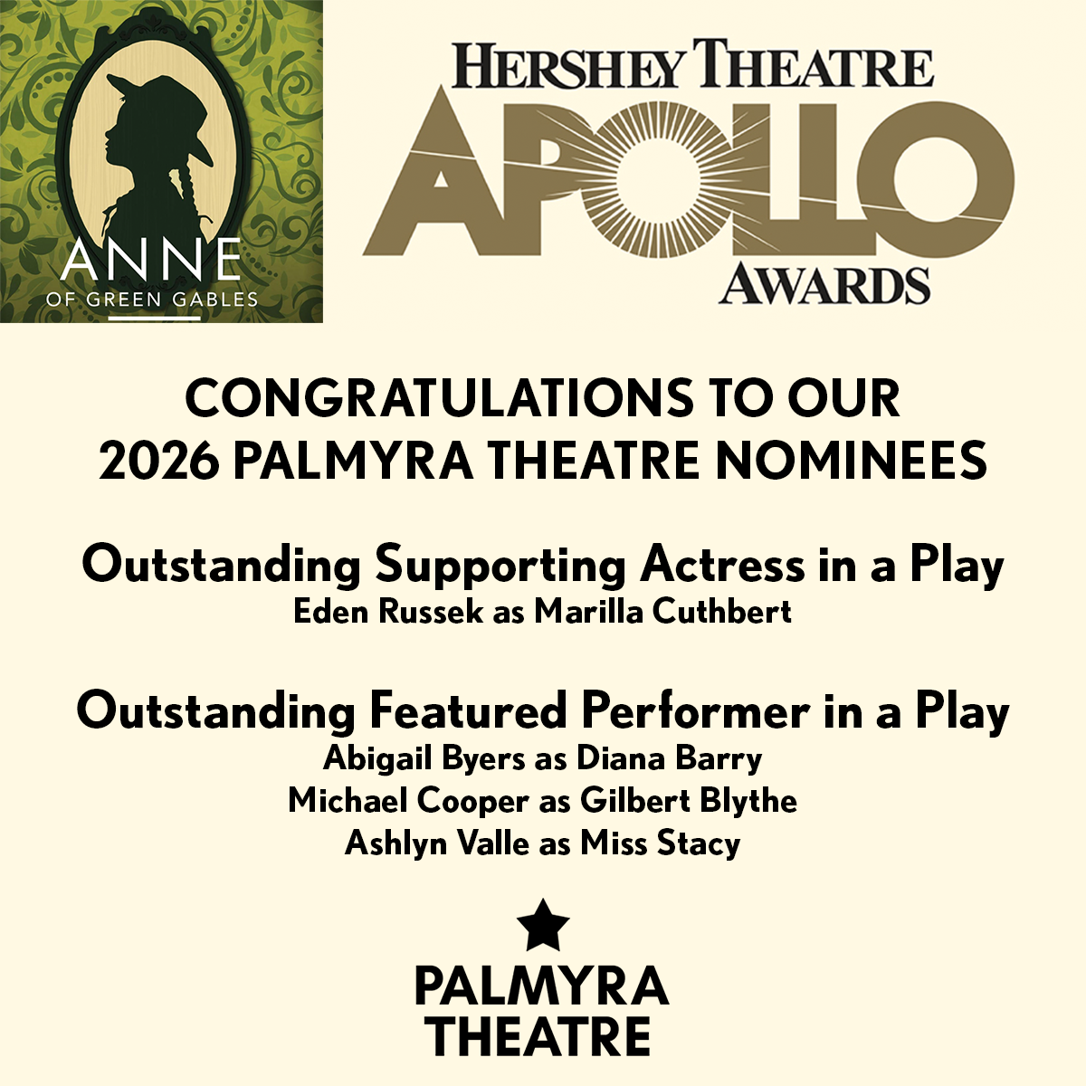 Congratulations to the four Palmyra Theatre students who earned nominations for their roles in Anne Of Green Gables this Fall! We are so immensely proud of you and all of your hard work!